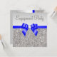 Elegant, personalised custom silver and royal blue square engagement party invitations with a beautiful glittery silver printed image graphic of sequins jewels, gems, glitter pattern, cute, sophisticated shiny printed royal blue bows and ribbons and pretty digital diamonds bling jewels and dark grey text on a silver gradient background. PLEASE NOTE: These are all flat printed graphics - not real bows, diamonds or sequins. These classy, sparkly, glamourous invites for engagements are decorated both sides. Beautiful, stylish, chic, trendy, modern, glitz and glamour invitations. Text, font and colour of font can all be customised. If you need assistance customising your product please contact me through my store. I will be happy to help. I have matching products for weddings in my store.