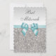 Faux Silver Sequins Teal Blue Bat Mitzvah Invitation