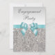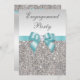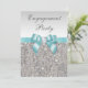 Faux Silver Sequins Teal Bow Engagement Party Invitation