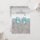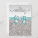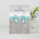 Faux Silver Sequins Teal Bow Wedding Typography Invitation