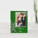 Customise the elegant Silver Snowflake on Green Thank You Note Photo Card inside and out. Add your picture on the outside and also add your own personal note of thanks, appreciation and gratitude inside. Suitable to use for gifts received at Christmas, winter birthday, bridal shower, engagement party or wedding. This classy and festive custom snowflake thank you note photocard features intricate silver tone snowflakes adorning the corners with a green background.