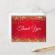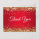Faux Sparkly Gold Glitter Bright Red Thank You Postcard