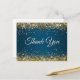 Faux Sparkly Gold Glitter Ocean Blue Thank You Postcard