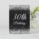 Faux Sparkly Silver Glitter Black 30th Birthday Invitation