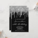 Faux Sparkly Silver Glitter Drips Black Birthday Invitation