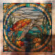 Bring the beauty and grace of the ocean into your space with this Faux Stained-Glass Sea Turtle Window Cling. Featuring a stunning sea turtle gliding through tranquil waters, this design showcases vibrant shades of aquamarine, emerald green, and soft golden hues to create the timeless look of stained glass. The intricate detailing and luminous colours are enhanced with an AI-generated image, producing a captivating effect as light filters through, transforming any window or glass surface into an underwater masterpiece.