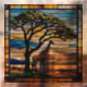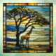 Transform your environment with the elegance and grace of this AI-Generated Faux Stained Glass Giraffe Next to Tree window cling, perfect for those who appreciate wildlife, nature, and artistic expression.