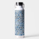 This water bottle features a pattern of mosaic faux stone in shades of blue and grey.