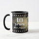 Fun, modern painty background with faux metal studs on this custom-year employee milestone anniversary coffee mug personalised with your choice of text and colour scheme, to recognise longevity, dedication and outstanding service, perfect additions to your staff recognition and work engagement efforts.