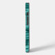 On this phone case, your double digit monogram in dark teal is placed on a semi transparent lighter teal blue circle banner. The banner is on a pretty background of faux teal foil abstract waves. Shimmery, and sure to be noticed.