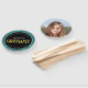 Stylish round graduation hand fan featuring a faux teal glitter border and the word "Graduate" in trendy faux gold foil on the front. On the back you can add the graduate's photo.