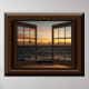 Faux window overlooking the sun setting over the ocean. For more faux window decor visit the rest of this shop.