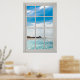 Enhance the decor of any room with this picturesque poster. The artwork creates the illusion of having a window which is encased by a White Wood Frame on your wall. The beautiful water and sky scenery makes you feel as though you are in a tropical place. The original artwork is 24" x 36" which is the average poster size and was created at high resolution (300 dpi) so re-sizing it is not a problem. The background scene of this poster is a lot wider so you can slide it left or right to feature a different view by clicking on "edit design". See other beautiful scenes in my store. Feel free to contact me if you have any questions.