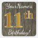 Faux Wood, Faux Gold 11th Birthday + Custom Name Square Sticker