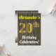 This birthday party invitation design features a message like "Alexander’s 20th Birthday Celebration!", where the name can be customised, and where the number "20th" has a faux gold-like appearance. It also features a rustic faux wood appearance background. The event details on the back can be personalised. It could be used to invite people to somebody’s twentieth birthday celebration or birthday party. [~Z0000119]