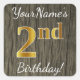 Faux Wood, Faux Gold 2nd Birthday + Custom Name Square Sticker