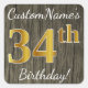 Faux Wood, Faux Gold 34th Birthday + Custom Name Square Sticker