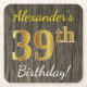 Faux Wood, Faux Gold 39th Birthday + Custom Name Square Paper Coaster
