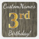 Faux Wood, Faux Gold 3rd Birthday + Custom Name Square Sticker
