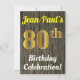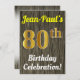 This birthday party invitation design features a message like "Jean-Paul’s 80th Birthday Celebration!", where the name can be personalised, and where the number "80th" has a faux gold-like appearance. It also features a rustic faux wood appearance background. The event details on the back can be customised. It could be used to invite people to somebody’s eightieth birthday celebration or birthday party. [~Z0000119]