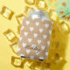 Customisable can cooler featuring white hearts pattern on faux wood background. Other colour and similar items are available in my store.