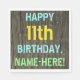 Faux Wood, Painted Text Look, 11th Birthday + Name Napkin