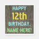 Faux Wood, Painted Text Look, 12th Birthday + Name Napkin