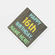 This fun birthday party napkin design features a message like "HAPPY 16th BIRTHDAY, NAME-HERE!", where the name can be personalised. The background features a rustic, brown, faux wood grain appearance pattern. The personalised message text features colours like blue, yellow, and green, and it has an appearance inspired by that of painted, stenciled lettering. Napkins like these could perhaps be used at a birthday party for somebody who is celebrating their sixteenth birthday. [~Z0000292]