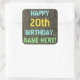Faux Wood, Painted Text Look, 20th Birthday + Name Square Sticker