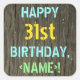 Faux Wood, Painted Text Look, 31st Birthday + Name Square Sticker