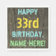 Faux Wood, Painted Text Look, 33rd Birthday + Name Napkin