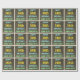 This fun birthday-themed wrapping paper design features a message like "HAPPY 34th BIRTHDAY, NAME-HERE!", where the name can be personalised. The background features a rustic, brown, faux wood grain appearance pattern. The personalised message text features colours like blue, yellow, and green, and it has an appearance inspired by that of painted, stenciled lettering. Wrapping paper like this could perhaps be used when wrapping birthday gifts being given to somebody who is celebrating their thirty fourth birthday. [~Z0000293]