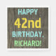 This fun birthday party napkin design features a message like "HAPPY 42nd BIRTHDAY, RICHARD!", where the name can be personalised. The background features a rustic, brown, faux wood grain appearance pattern. The customisable message text features colours like blue, yellow, and green, and it has an appearance inspired by that of painted, stenciled lettering. Napkins like these could perhaps be used at a birthday party for somebody who is celebrating their forty second birthday. [~Z0000292]
