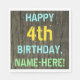 Faux Wood, Painted Text Look, 4th Birthday + Name Napkin