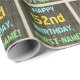 This fun birthday-themed wrapping paper design features a message like "HAPPY 52nd BIRTHDAY, FIRST-NAME!", where the name can be personalised. The background features a rustic, brown, faux wood grain appearance pattern. The customisable message text features colours like blue, yellow, and green, and it has an appearance inspired by that of painted, stenciled lettering. Wrapping paper like this could perhaps be used when wrapping birthday gifts being given to somebody who is celebrating their fifty second birthday. [~Z0000293]