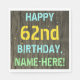 Faux Wood, Painted Text Look, 62nd Birthday + Name Napkin