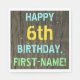 Faux Wood, Painted Text Look, 6th Birthday + Name Napkin