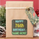 This fun birthday-themed sticker design features a message like "HAPPY 76th BIRTHDAY, NAME-HERE!", where the name can be personalised. The background features a rustic, brown, faux wood grain appearance pattern. The customisable message text features colours like blue, yellow, and green, and it has an appearance inspired by that of painted, stenciled lettering. Stickers like these could perhaps be given as a gift, or perhaps be used as decorations at a birthday party being held for somebody who is celebrating their seventy sixth birthday. [~Z0000296]