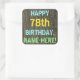 Faux Wood, Painted Text Look, 78th Birthday + Name Square Sticker