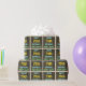 This fun birthday-themed wrapping paper design features a message like "HAPPY 79th BIRTHDAY, FIRST-NAME!", where the name can be personalised. The background features a rustic, brown, faux wood grain appearance pattern. The customisable message text features colours like blue, yellow, and green, and it has an appearance inspired by that of painted, stenciled lettering. Wrapping paper like this could perhaps be used when wrapping birthday gifts being given to somebody who is celebrating their seventy ninth birthday. [~Z0000293]