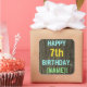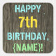 Faux Wood, Painted Text Look, 7th Birthday + Name Square Sticker