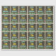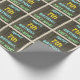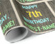 This fun birthday-themed wrapping paper design features a message like "HAPPY 7th BIRTHDAY, FIRST-NAME!", where the name can be personalised. The background features a rustic, brown, faux wood grain appearance pattern. The personalised message text features colours like blue, yellow, and green, and it has an appearance inspired by that of painted, stenciled lettering. Wrapping paper like this could perhaps be used when wrapping birthday gifts being given to somebody who is celebrating their seventh birthday. [~Z0000293]