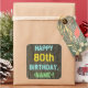 This fun birthday-themed sticker design features a message like "HAPPY 80th BIRTHDAY, <NAME>!", where the name can be personalised. The background features a rustic, brown, faux wood grain appearance pattern. The personalised message text features colours like blue, yellow, and green, and it has an appearance inspired by that of painted, stenciled lettering. Stickers like these could perhaps be given as a gift, or perhaps be used as decorations at a birthday party being held for somebody who is celebrating their eightieth birthday. [~Z0000296]