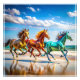 Multicolored Glass Horses Galloping on a Beach Poster | Vibrant Summer Wall Art. Bring the beauty and elegance of art to your space with this stunning poster featuring three multicolored glass horses galloping down a sandy beach on a warm summer day. The vibrant colours and dynamic movement of the glass horses create a captivating scene, blending nature and creativity in a unique way. Perfect as wall art for horse lovers or anyone looking to add a touch of colour and energy to their home or office decor, this piece evokes a sense of freedom and summer serenity.