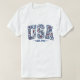 This unique design features the letters "USA" rendered in a cozy, textured faux yarn style with intricate floral and flag patterns. It tells a story of handcrafted American tradition, making it a special piece for those who appreciate folk art aesthetics while celebrating their national pride during the Fourth of July or throughout the 250th anniversary year.