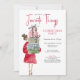 Favorite Things Christmas Party Invitation. Invite friends and family for a Favorite things gift exchange party! Design features whimsical watercolor of a woman in red carrying a stack of presents tied with pretty bows.