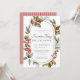 Set in a festive, candlelit atmosphere with sparkling cocktails, holiday hors d’oeuvres, and the warmth of good company, this soirée is all about celebrating the joy of giving — and discovering delightful new favorites to love. This elegant invitation has an oval frame trimmed in gold with winter botanicals of holly and red berries with other leafy stems framing your text beautifully. A red thin striped pattern on the back of the invitation add to the holiday theme.