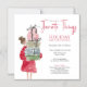 Favorite Things Holiday Party magnetic Invitation. Invite friends and family for a Favorite things gift exchange party! Design features whimsical watercolor of a woman in red carrying a stack of presents tied with pretty bows.