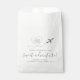 "Thanks for sharing this sweet adventure" personalised travel theme bridal shower or destination wedding paper favour bags feature a simple and cute romantic aeroplane heart monogram initial wedding logo design and retro inspired typography in editable grey and white that can be changed to match your event or kept in an understated minimal aesthetic shown.