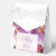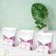 Orchids provide an ornamental backdrop for this wedding favour box. Great for warm weather events, weddings, anniversaries, outdoors, indoors. Use to complement floral wedding event themes, including tropical themes. Easily add your details. Use the template to personalise.